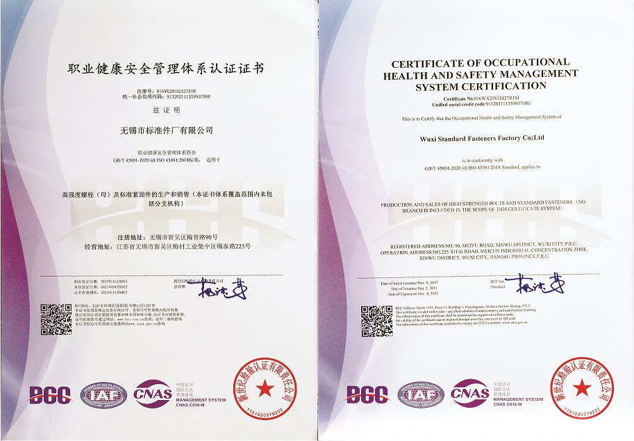 SAC/TC85紧固件制造者识别标志使用证书